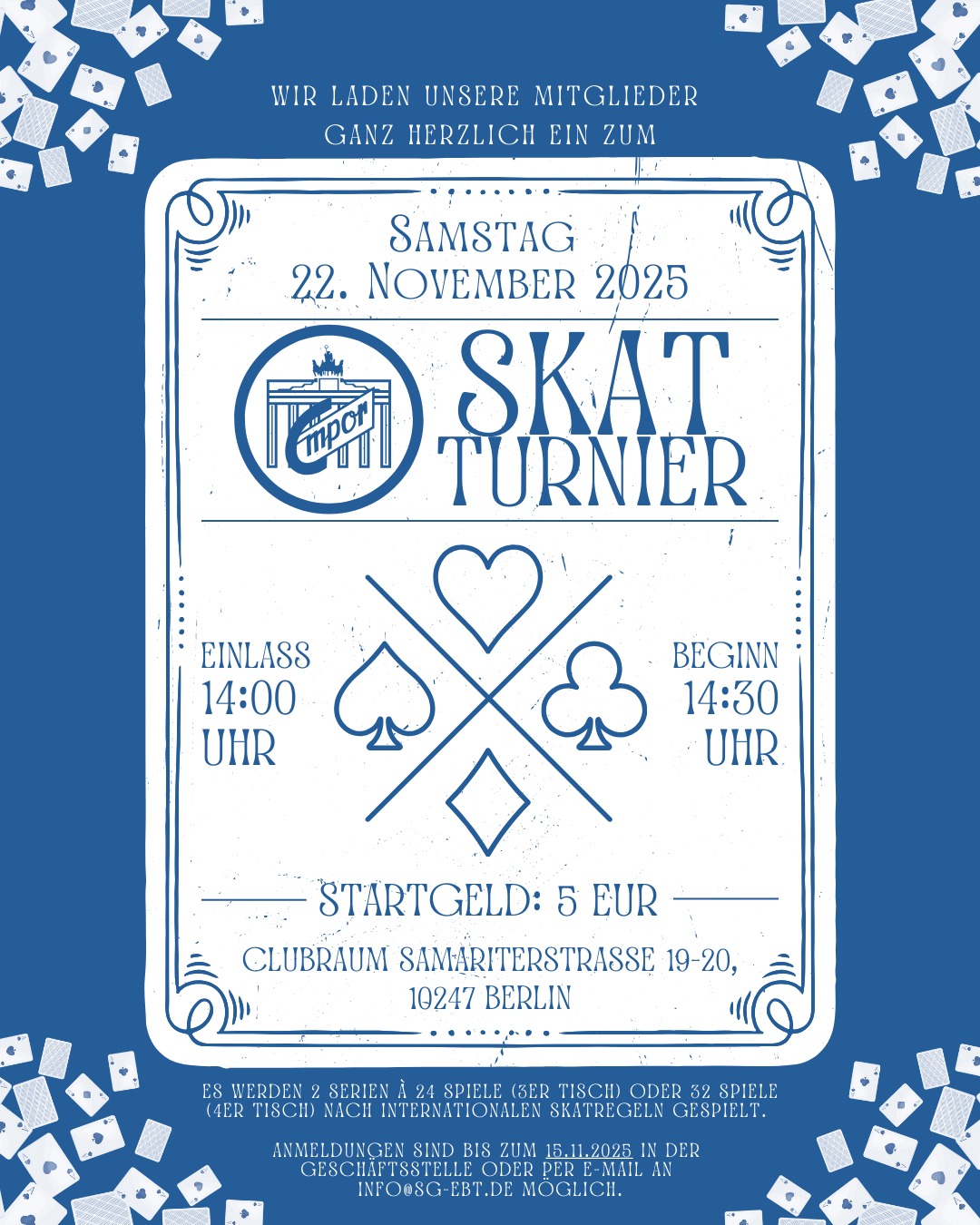 Am 22. November ist es wieder soweit, das jährliche Skatturnier steht an!