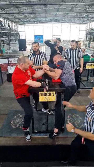 Zu Beginn konnte sich der Abteilungsleiter René Hauenschild mit rechts den Sieg in der Disabled Klasse stehend sichern, mit links scheiterte er nur knapp an dem Europa- und zigfachen Deutschen Meister Eric Hoppe, welcher mit deutlich mehr Kampfgewicht an den Tisch ging.